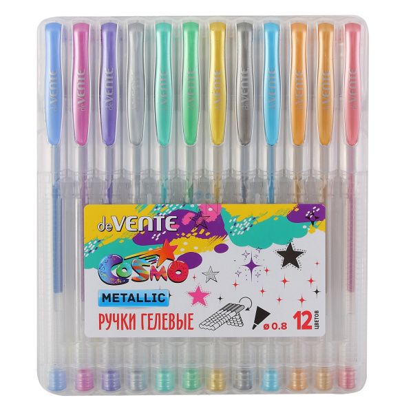 Набор гелевых ручек 12цв 12шт 0,8мм прозрачный корпус deVENTE Cosmo Metallic 5051047 пласт/уп